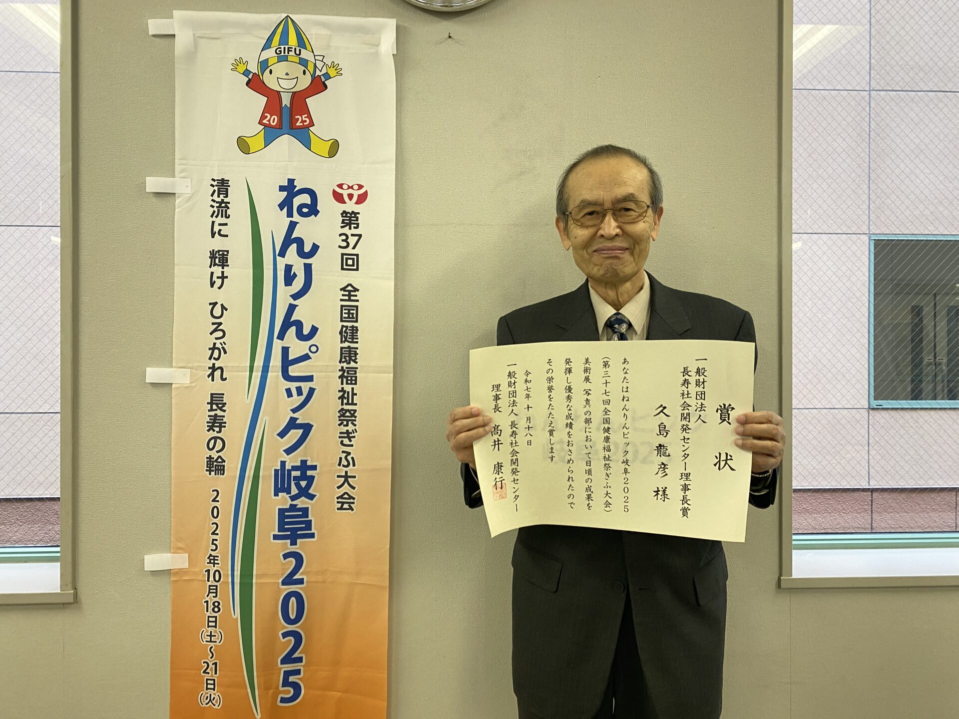 ねんりんピック岐阜2025美術展・写真部門で久島龍彦さんが全国3位となる一般財団法人長寿社会開発センター理事長賞を受賞