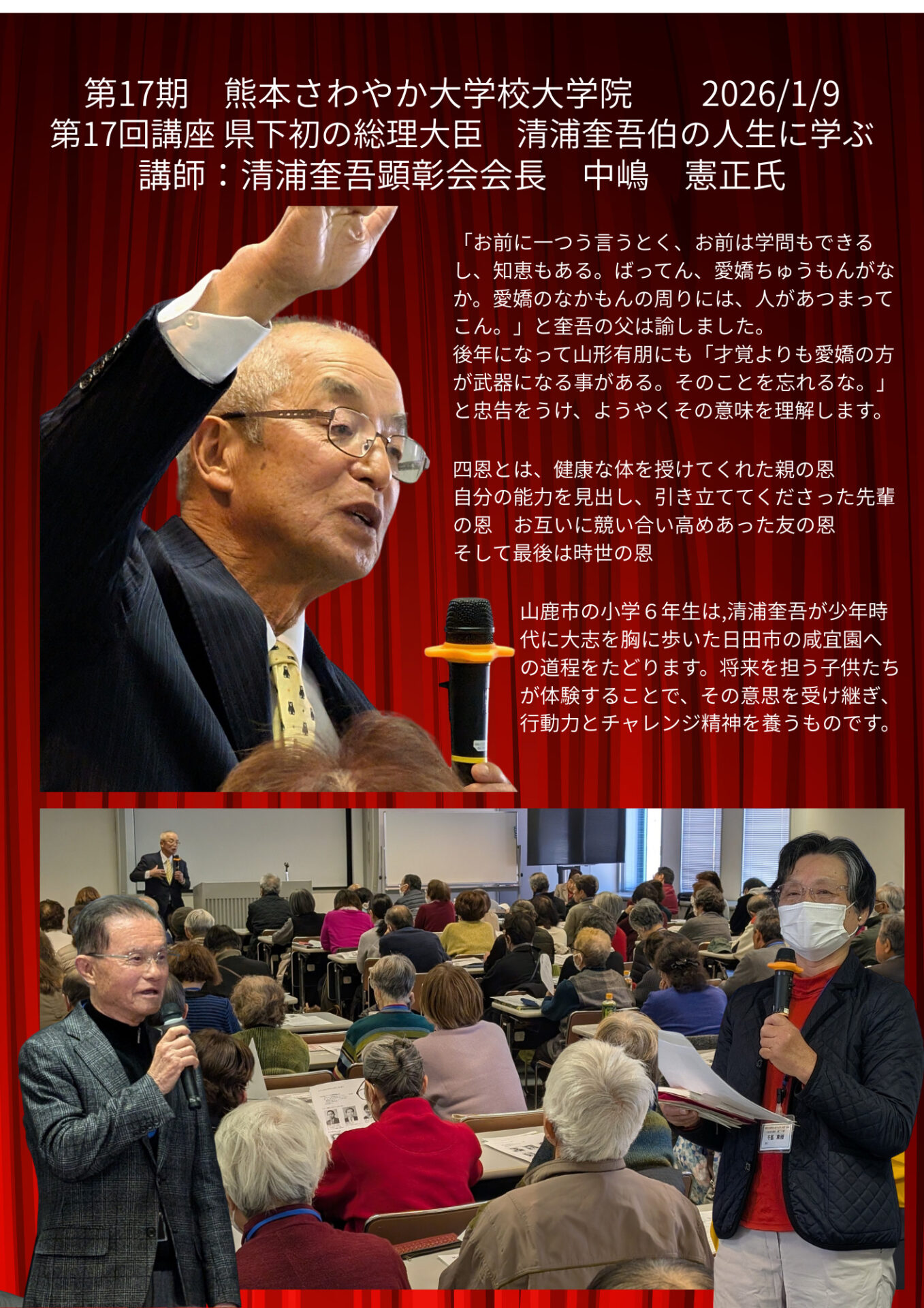 令和8年1月9日 大学院講座 「県下初の総理大臣 清浦奎吾伯の生涯に学ぶ」